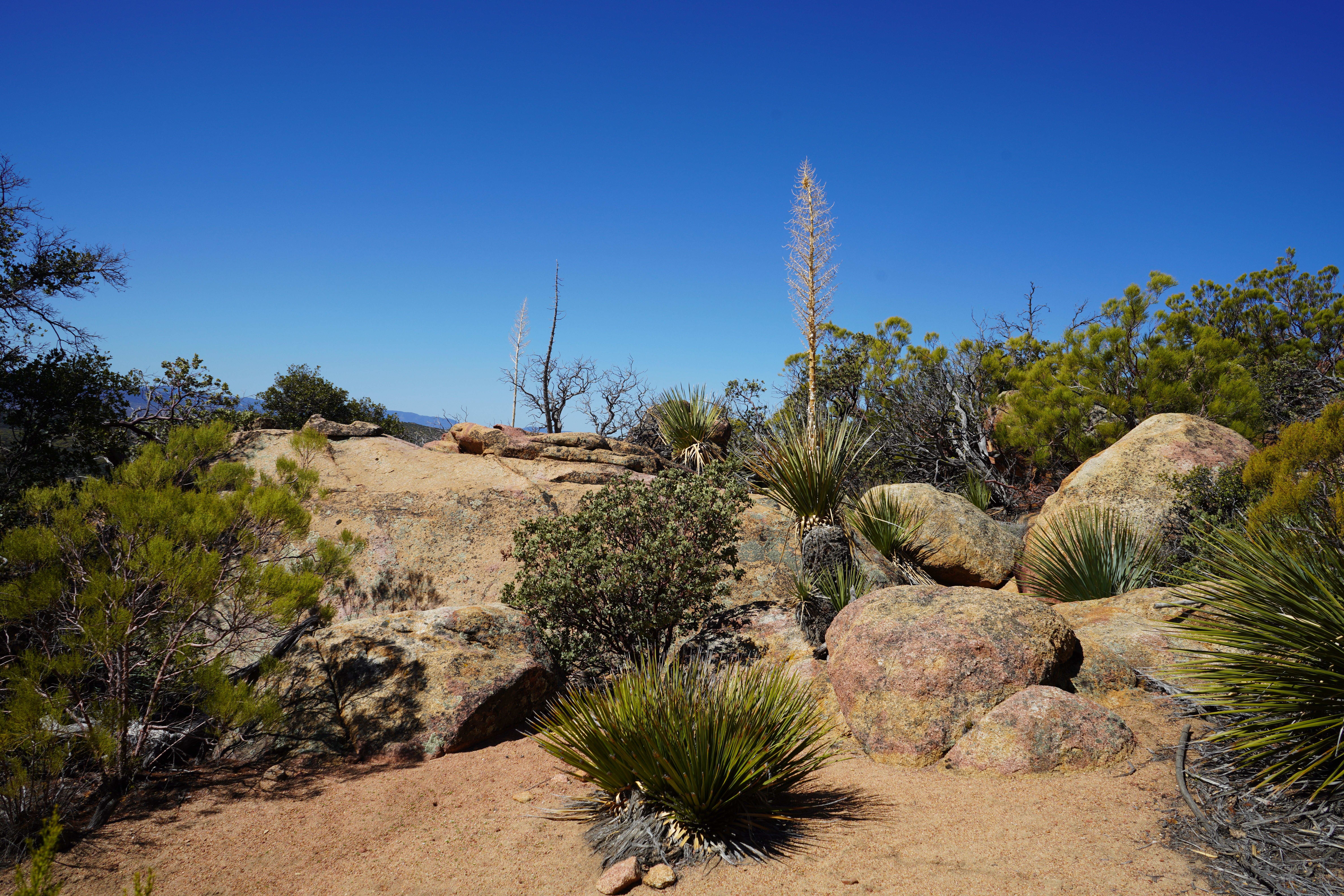 We had a nice break under a big tree in the shade next to the trail and continued onward. We soon passed the other two hikers the first girl probably talked about, but we would never actually see the thru hiker, however, we may have spotted his backpack next to the trail as he probably ascended to a water source 1 mile off the trail at Cedar Springs. So that would make only 3 people spotting’s for the long day. Again we split up and it seemed as if our 4th was sucking wind with the long stretch of trail combined with the elevation beginning to reach well beyond 6,000 feet. We would reach a vista on the ridgeline of the mountain where we could see in both directions which seemed like another great place to stop for our 2nd real break.