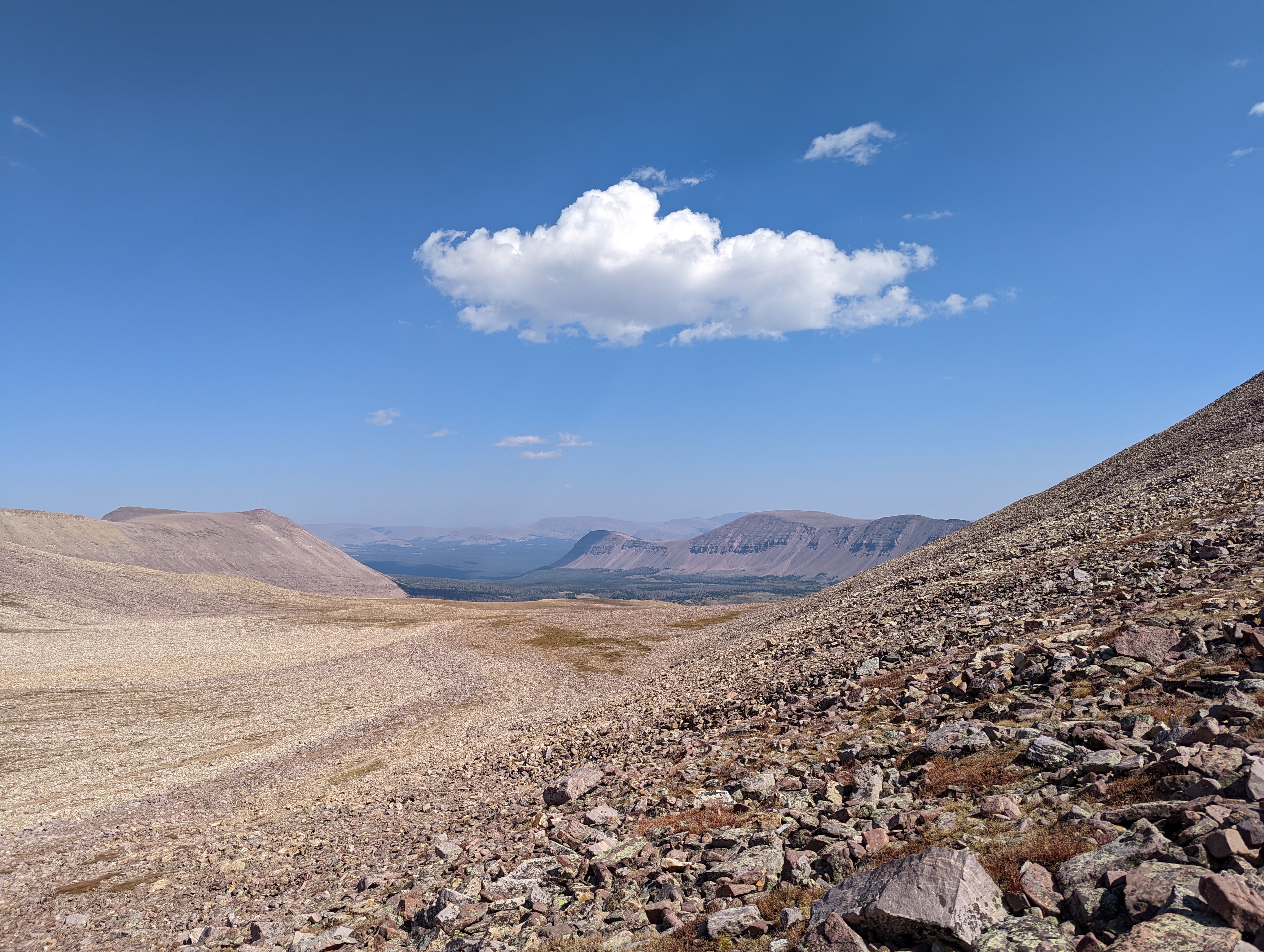 We kept running into other groups that had already packed their gear and were heading down the mountain. Everyone it seemed had climbed on Saturday and now that it was Sunday were on their way out. It also seemed that most of them had come from Salt Lake City. The most memorable hiker we passed was a girl from Connecticut hiking by herself. She was impressed that I actually knew the name of the highpoint of Connecticut as well had actually been there!